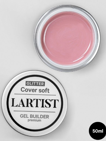 Gel Premium Builder Cover Soft L’artist es un gel camuflaje de color rosado con un pequeño toque de glitter, no quema, con alta densidad, máxima adhesión y es extremadamente resistente.